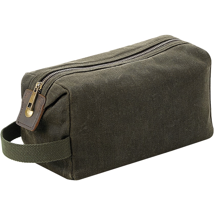Necessär av vaxat bomullstyg och detaljer av äkta läder. Invändigt finns flera mindre förvaringsfickor varav en är dragkedjeförsedd. En necessär av riktigt hög kvalitet!