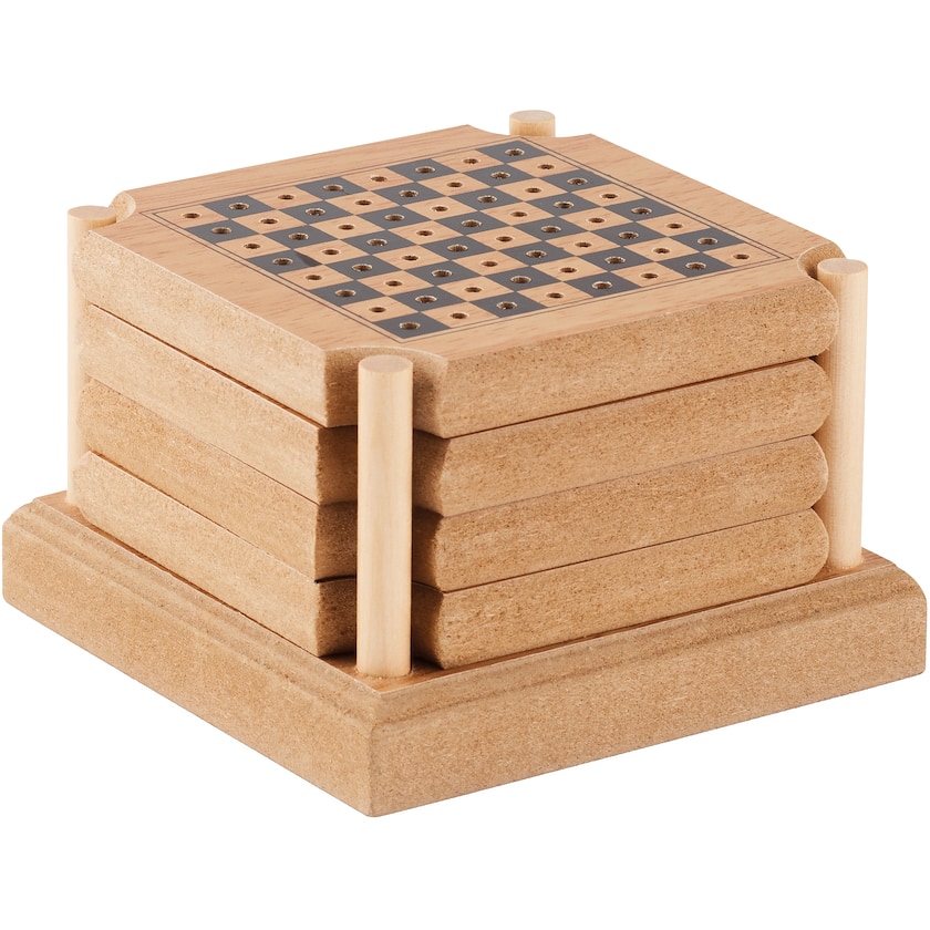 Glasunderlägg och spel i ett. Setet innehåller fyra glasunderlägg som består av fyra spel: backgammon, luffarschack, schack och kinaschack. Underhållning för både barn och vuxna!