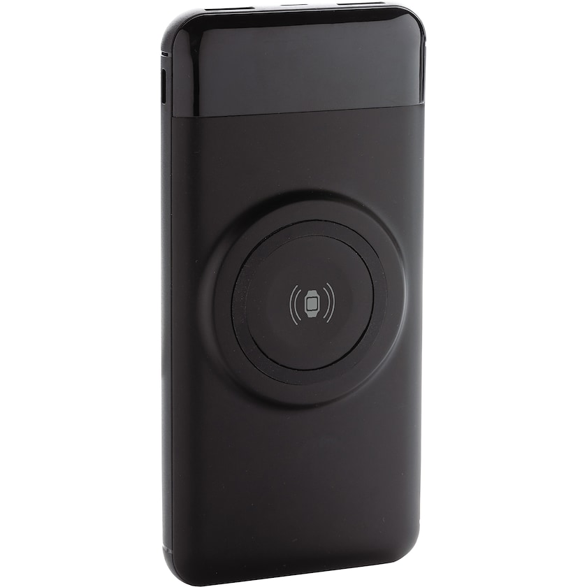 Trådlös powerbank som också kan ladda din Apple Watch. Placera bara din Apple Watch eller din mobiltelefon på laddplattan och den börjar att ladda. Du kan också ladda via de två USB-portarna. Powerbanken klarar att ladda din enhet upp till 5 gånger på en laddning. Tack vare en batteriindikator håller du lätt koll på batterinivån. En mikro-USB-kabeln medföljer. Micro input 5V/2A, typ-C input 5V/2A, USB output: 5V/1A. Wireless output phone 5W 5V/1A, wireless output watch 3W (5V/600 mAh).