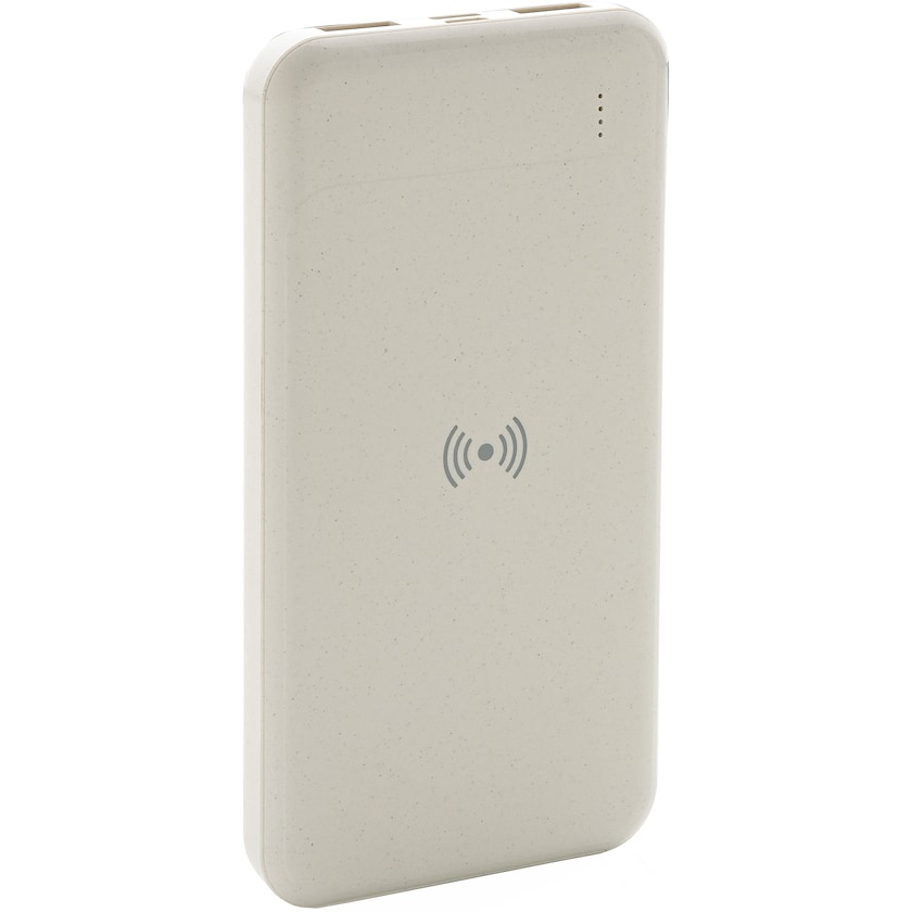 Trådlös powerbank av återvunnen plast. Plasten är RCS-certiferad vilket är en garant för att plasten verkligen är återvunnen. När powerbanken är fulladdad kan den ladda upp din mobiltelefon upp till fyra gånger. Powerbanken är försedd med batteriindikator. Levereras i snygg presentlåda.