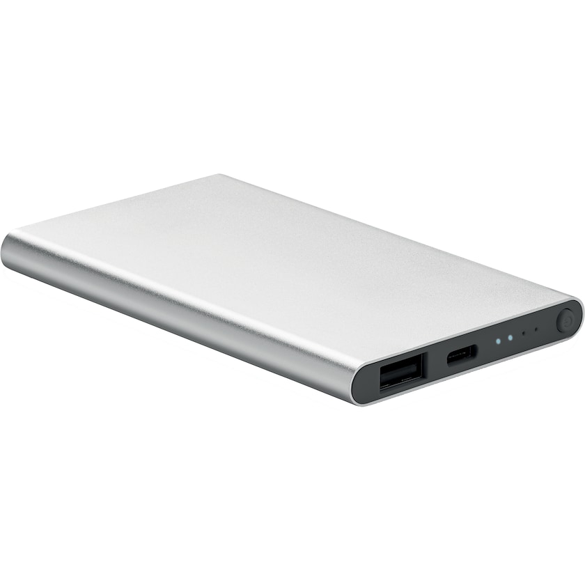 Tunn powerbank av aluminium. Levereras med mikro-USB-kabel. Stödjer den senaste snabbladdningstekniken.