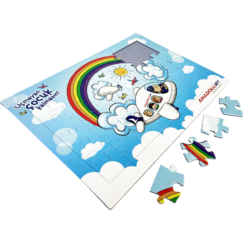 Pussel med antingen 20, 42 eller 99 bitar. Välj själv önskat antal bitar. Hela ovansidan digitaltrycks efter önskemål.
