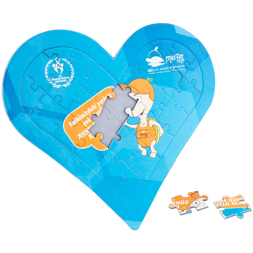 Hjärtformat pussel med 27 bitar. Ladda ner mallen och designa ditt högst unika pussel! Beställ hjärtformade pussel med tryck hos Axon Profil!