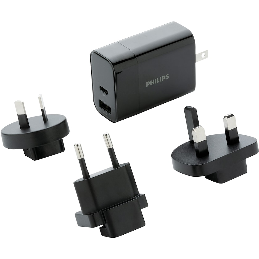 Ultrasnabb reseadapter från Philips. Levereras i en praktisk förvaringspåse. Reseadaptern består av fyra uttag: integrerat uttag för USA och utbytbara uttag för Australien, Storbrittannien och EU. Levereras i presentlåda från Philips. Trycket kan även ske på förvaringspåsen och tryckstorleken är då 90 x 40 mm.