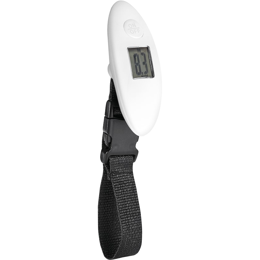 Digital bagagevåg med tryck. Klarar en maximal vikt på 40 kg. Drivs med 1 st CR2032-batteri (medföljer).