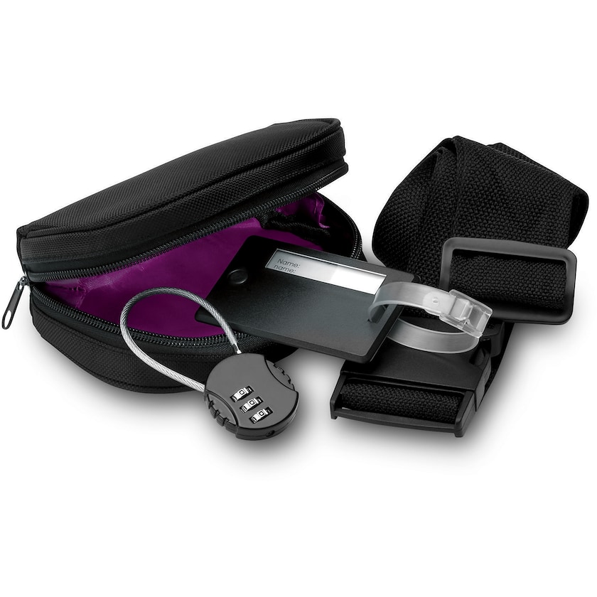 Reseset innehållande bagageband, kombinationslås och bagagebricka. Allt i läckert nattsvart!