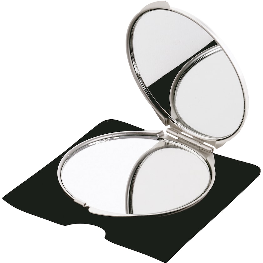 Make-up-spegel med båda vanlig och förstorande spegel. Angelina är tillverkad av aluminium och levereras i ett svart sammetsfodral. Märkning sker med lasergravyr.