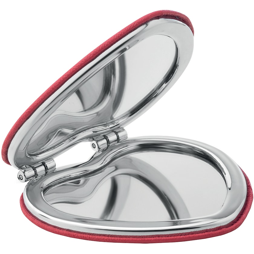 Hjärtformad sminkspegel med dubbla speglar. Heart har en elegant yta av konstläder och snyggt kromade detaljer. Beställ hjärtformade sminkspeglar med tryck hos Axon Profil!