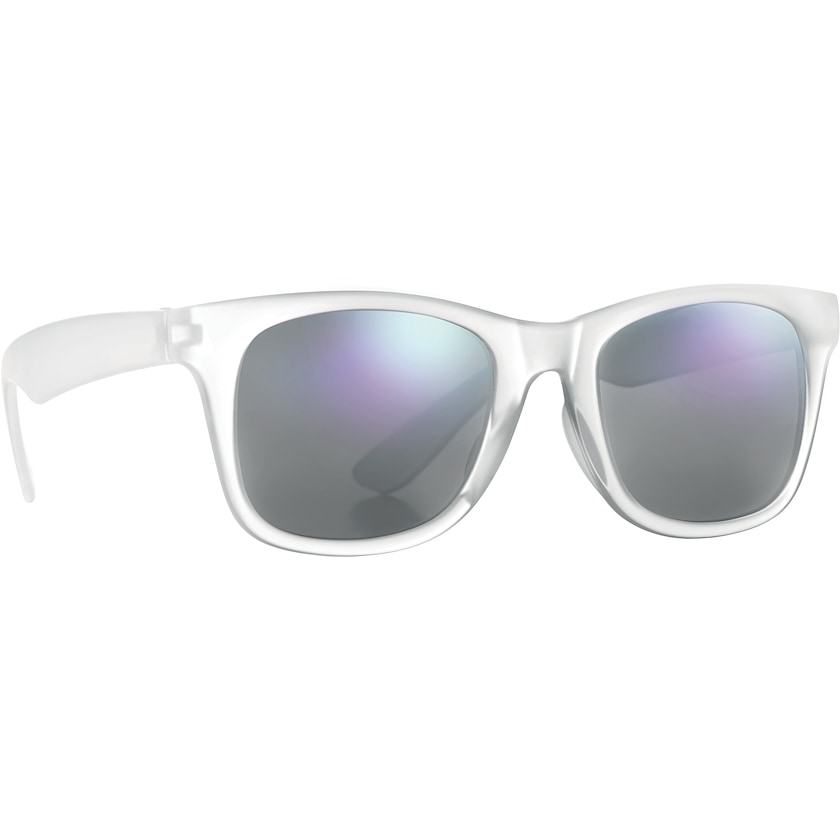 Solglasögon med spegelglas. Ibiza är transparent och har bågar i matchande färg. Glasögonen har UV400-skydd. Kan tryckas i maximalt två färger.