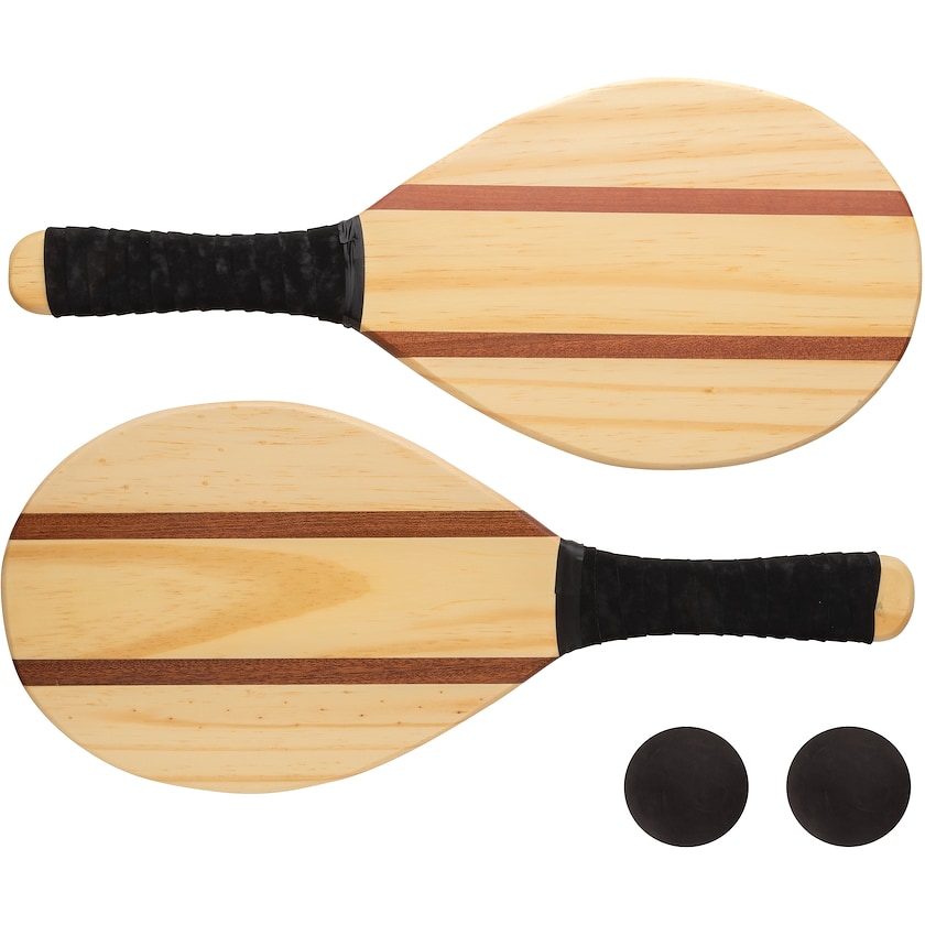 Högkvalitativt strandtennisset av trä. Whitby är tillverkad av furu med inslag av sapelträ. Två bollar samt förvaringspåse av bomull medföljer. Levereras i snygg presentförpackning. Trycket sker på förvaringspåsen.