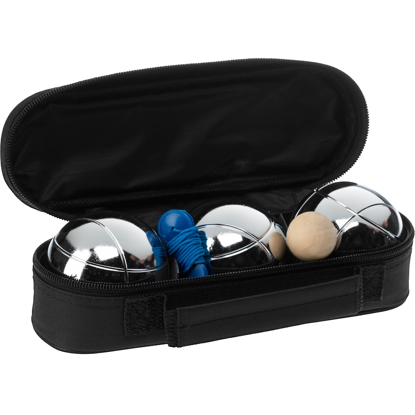 Bouleset med tre klot. Setet kommer i en praktisk förvaringsväska. Trycket sker på väskan.