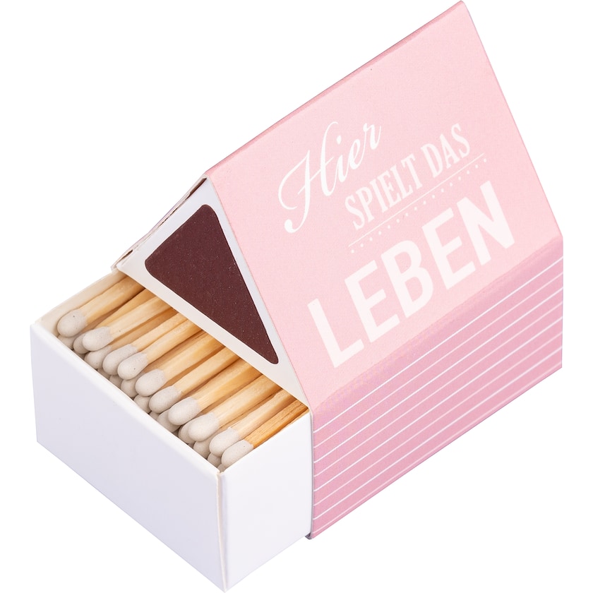 Kul tändsticksask som har formen av ett hus. Tryck i max fyra färger sker enligt Pantoneskalan och däröver i CMYK. Du väljer fritt bland 16 olika knoppfärger och 2 olika träfärger.