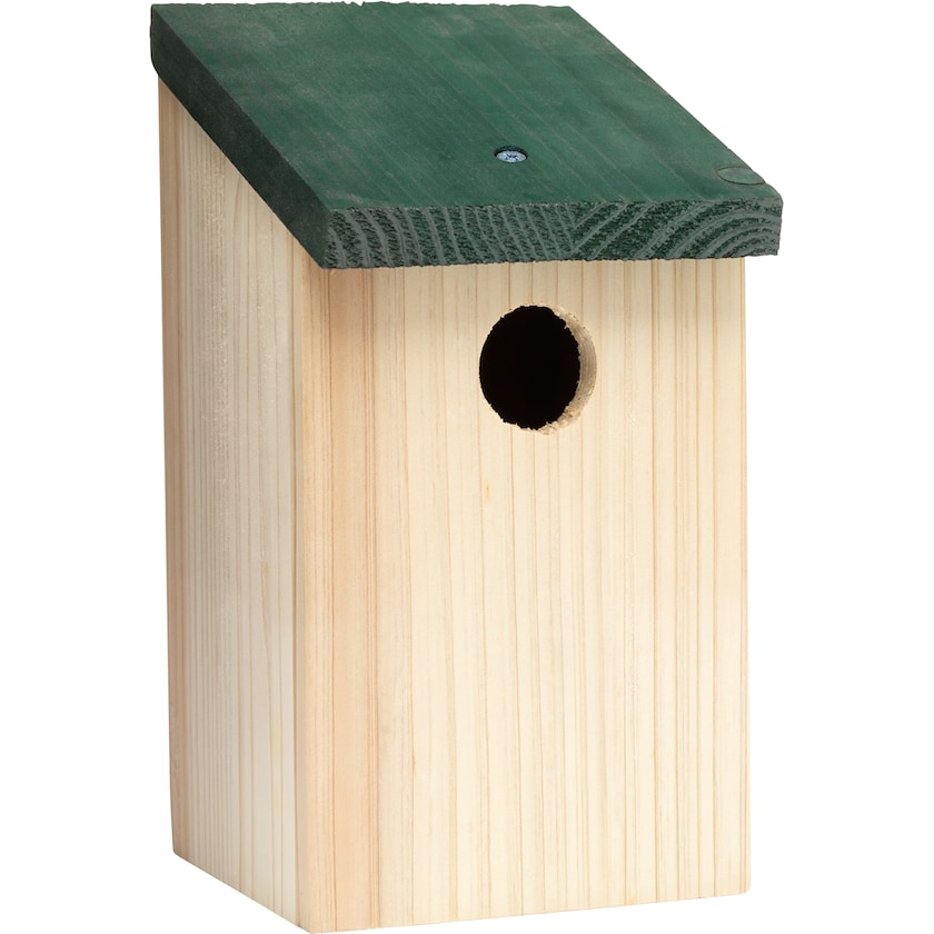 Fågelholk av äkta furu. Perfekt för småfåglar som t ex sparvar och mesar. Taket kan öppnas och på baksidan finns en upphängningsögla. Passar lika bra i trädgården som på balkongen.