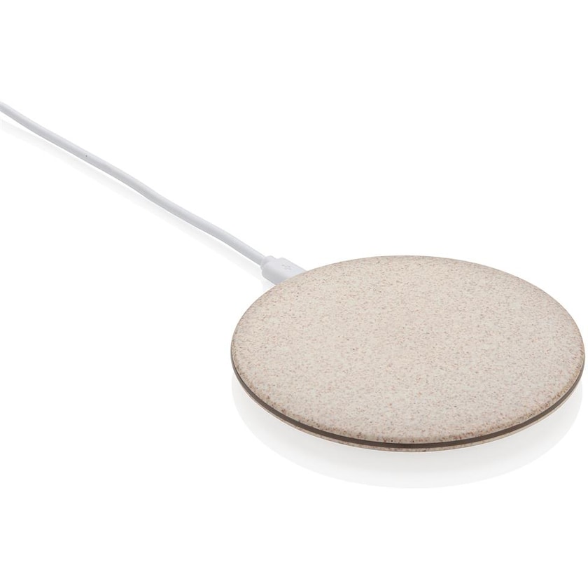 Miljövänlig trådlös laddare som är tillverkad av 35% vetefiber och 65% plast. En LED-indikator lyser upp när enheten laddar. Kompatibel med alla QI-aktiverade enheter som senaste generationen Android, iPhone 8 och uppåt.