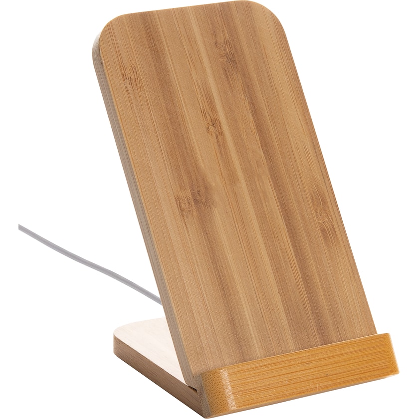 Trådlös mobiltelefonladdare av äkta bambu. Kompatibel med alla Qi-anpassade mobiltelefoner såsom de senaste Android-telefonerna och iPhone 8 och högre. En både praktisk och snygg laddare.