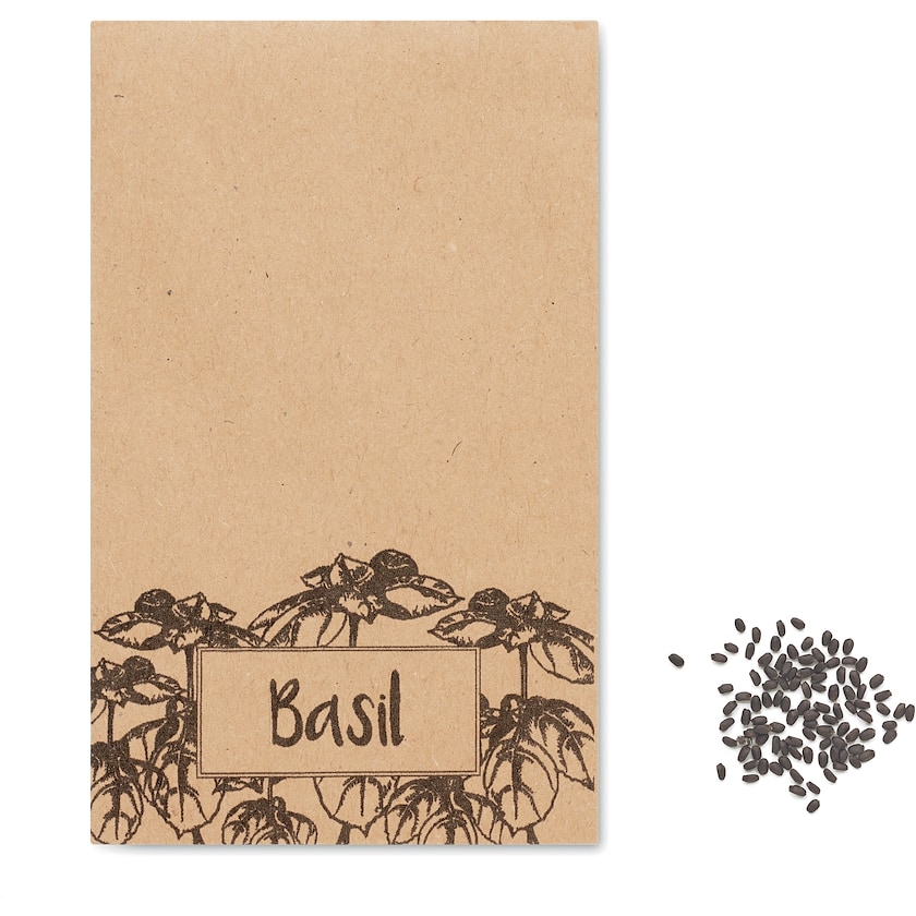Fröpåse fylld med basilikafrön. En trevlig gåva för alla som älskar att odla.