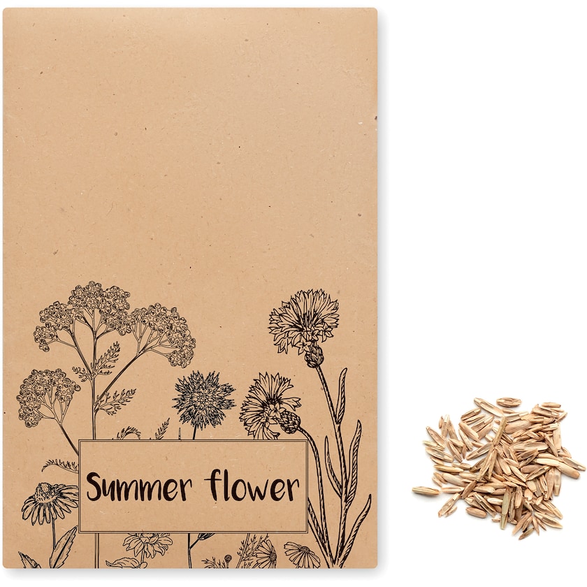 Fröpåse med frön av typen sommarblommor. Fröpåsen kan köpas från endast 50 st. Fröna ger blandade sommarblommor. Produkten är tillverkad inom EU. Trycket på framsidans nederdel samt på baksidan är förtryckt och kan inte ändras eller tas bort.