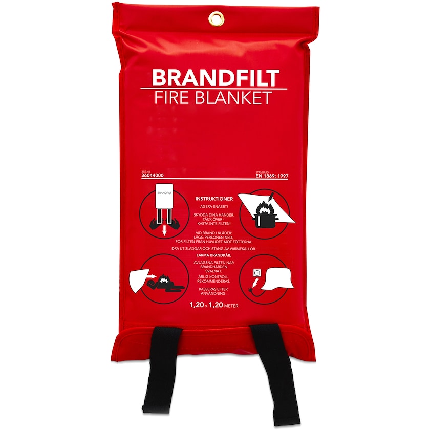 Högkvalitativ brandfilt från Housegard med måtten 120 x 120 cm Instruktioner finns på svenska, finska, danska och norska. Brandfilten är certifierad EN-1869-1997.