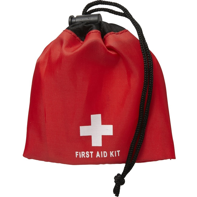 Första-hjälpen-påse med plåster och sårtvätt. Ett prisvärt set med det allra nödvändigaste om olyckan är framme. Beställ första-hjälpen-påsar med tryck hos Axon Profil!