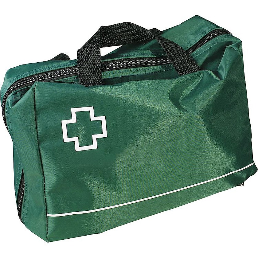 Litet förbandskit att använda om olyckan är framme. Innehåll: 2st triangulärt bandage, 2st rullar med elastiskt bandage, 1st plastpincett, 2st mindre rulle med bandage (5x450cm), 1st kompress (12,7x23cm) 4 par skyddshandskar, 4st handtvätt, 4st sårtvätt, 1st skyddsmask för mun-mot-mun användning, 1st sax, 1st tejp, 1st brett plåster (7x20cm), plåster (blandade storlekar), ögonkompress, 2st mitellor, säkerhetsnålar, 2st räddningsfiltar