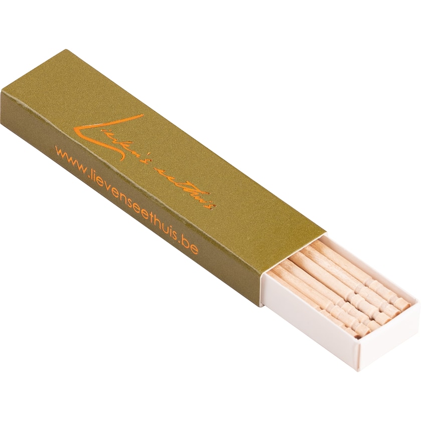 Pappersask innehållande cirka tjugo tandpetare i trä. Asken trycks helt efter dina önskemål.