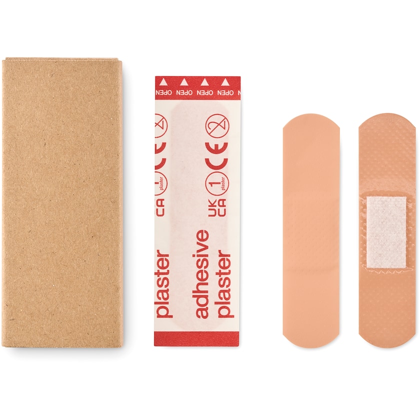 15 st plåster i ask av naturfärgat återvunnet papper. Trycket sker på asken.