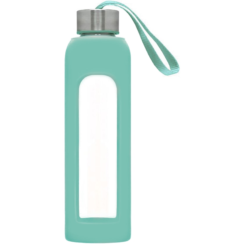 Vattenflaska av tåligt borosilikatglas med silikonöverdrag. Flaskan är givetvis livsmedelsgodkänd. En snygg och praktisk vattenflaska som passar lika bra i alla sammanhang.