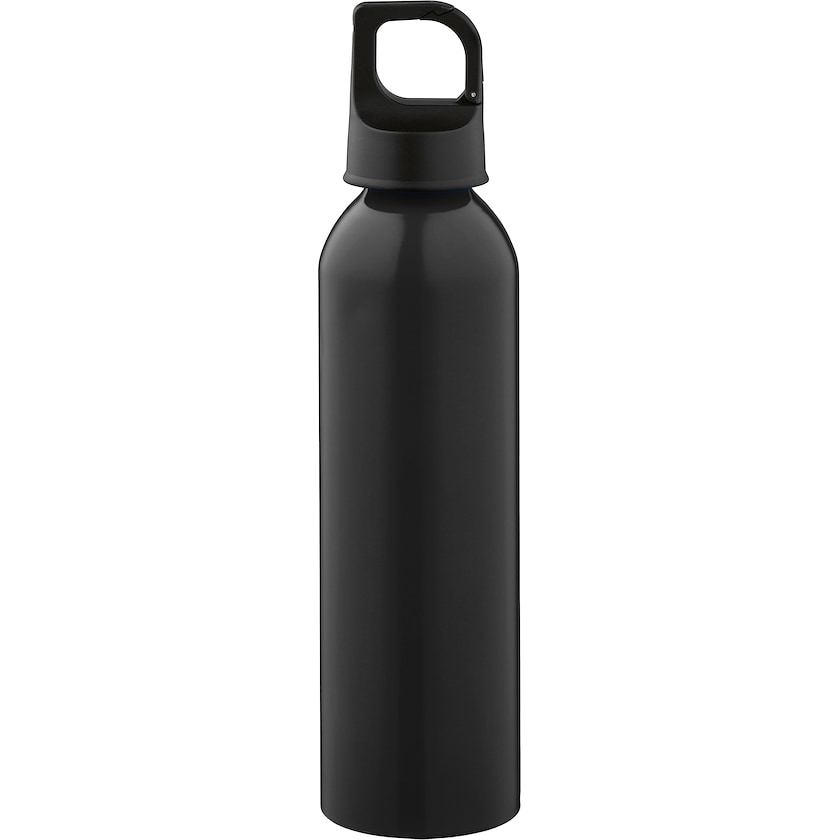 Läckagesäker vattenflaska av återvunnen aluminium. Locket är försett med en karbinhake vilket gör att vattenflaskan kan fästas på t ex ryggsäcken. Tryck kan ske i maximalt en färg.