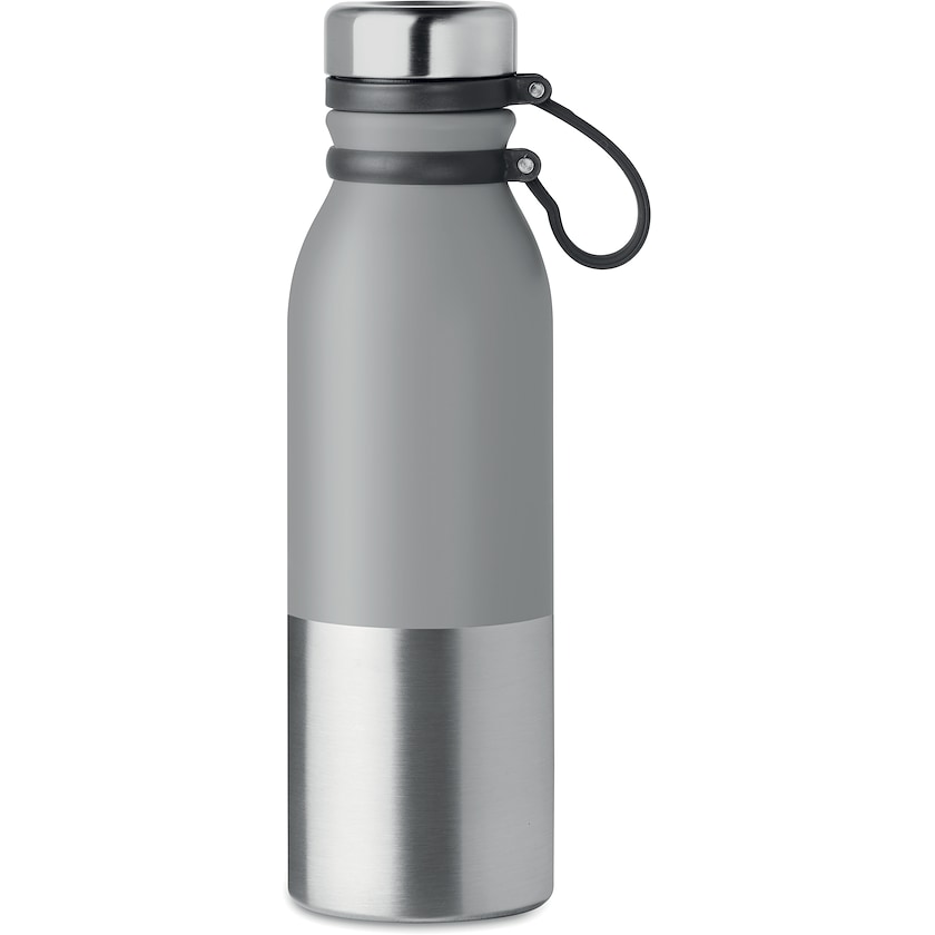 Vattenflaska av rostfritt stål med lackerad överdel. Gerald har ett silikonhandtag som gör att man lätt kan bära den. Flaskan är helt läckagesäker. Vid tryck i bara en färg så är tryckytan hela 190 x 65 mm.