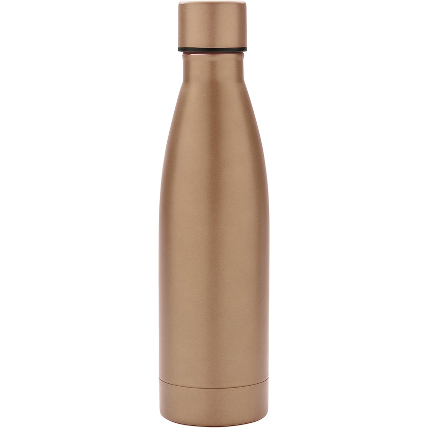 Vackert designad vattenflaska av återvunnet rostfritt stål. Vattenflaskan har dubbla väggar vilket göra att varm dryck hålls varm i 5 timmar och kall dryck hålls kall i 15 timmar. Flaskan passar i de flesta bilars mugghållare. Levereras styckförpackad i en presentlåda av FSC-certifierad kartong.