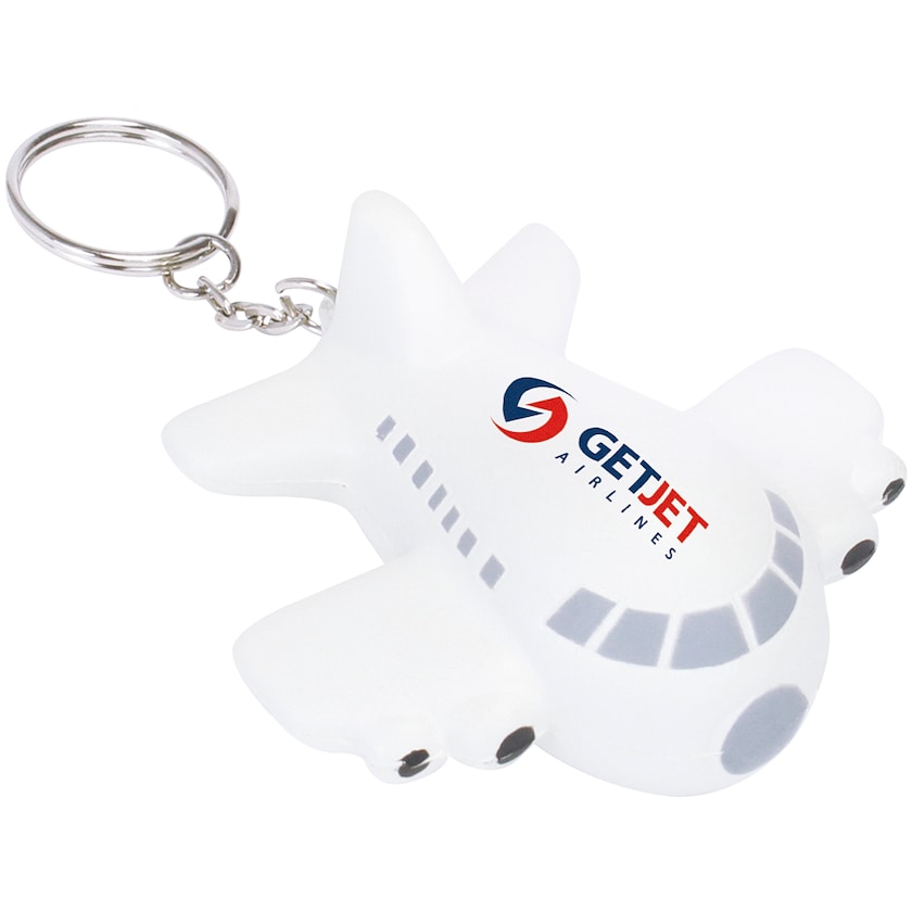 Stressboll designad som ett flygplan på nyckelring. Passar perfekt för flygbolag. Trycket håller för lång tids knådande.