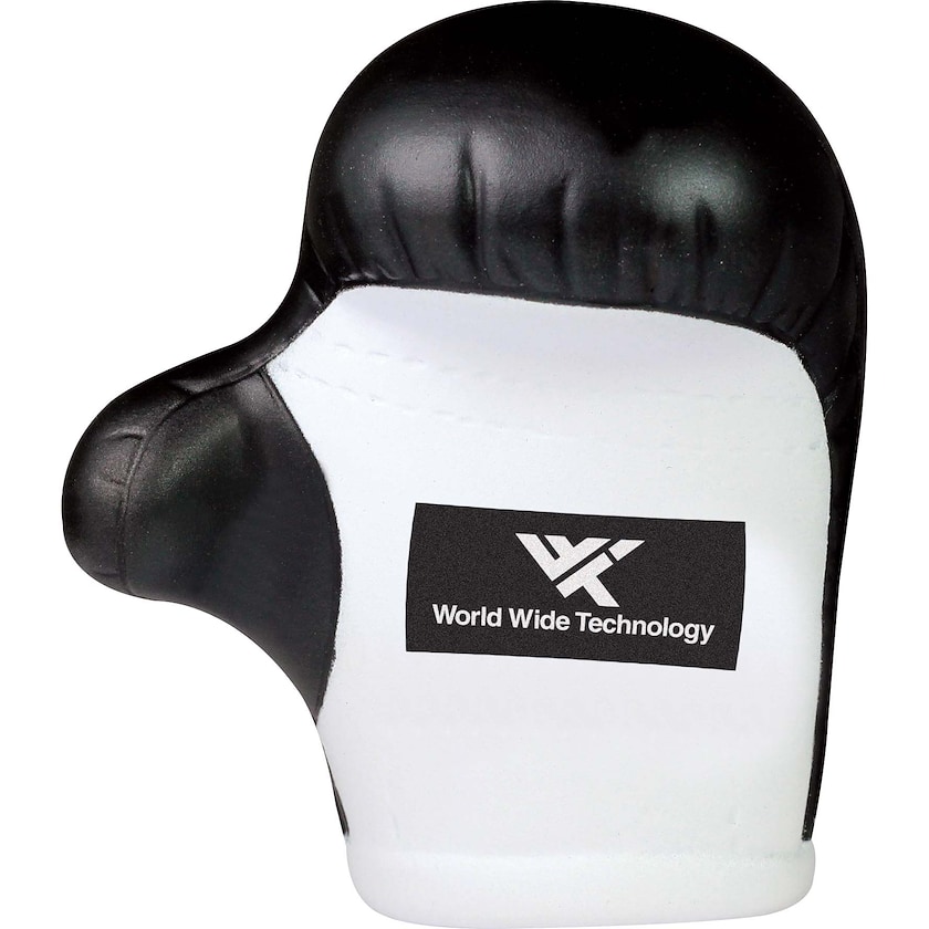 Stressboll i form av boxhandskar. Trycket kan antingen ske på boxhandskens insida eller utsida.