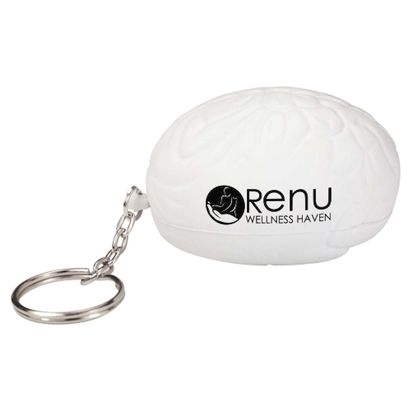 Stressboll formgiven som en hjärna. Stressbollen är försedd med en nyckelring vilket gör att den kan fästas på din nyckelknippa. Tryckkvaliteten håller högsta klass.