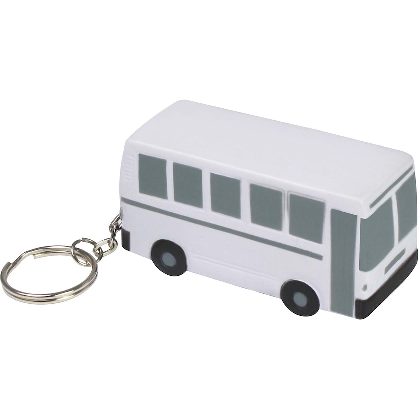 Stressboll formgiven som en buss försedd med en nyckelring. Trycket håller högsta kvalitet vilket gör att trycket sitter kvar även efter lång tids användning.