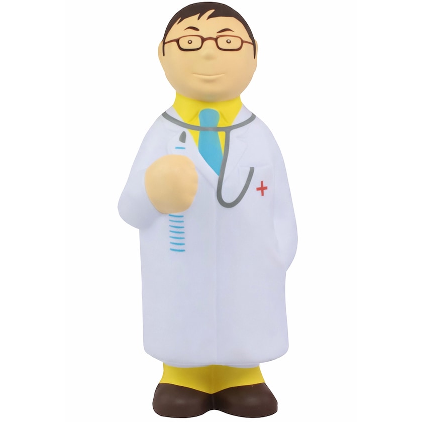 Stressboll i form av en läkare i läkarrock. Ta hjälp av en läkare för att bli kvitt din stress! Trycket håller toppkvalitet.