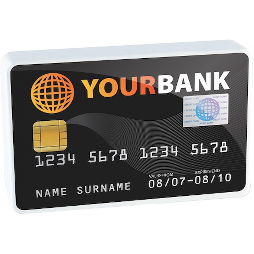 Stressboll nr 1 för kreditkortsföretag. Formgiven som ett kreditkort. Trycket håller toppkvalitet.