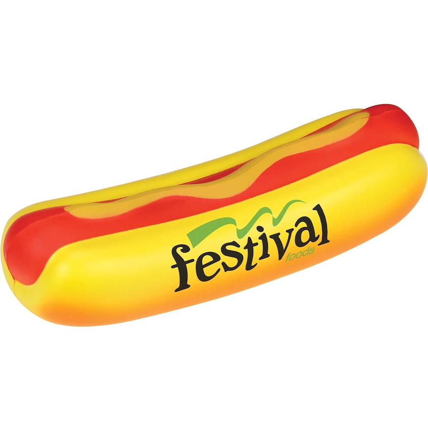 Kul stressboll för den matglade. Designad som en varmkorv med bröd och senap. Vi är experter på tryck på stressbollar vilket gör att trycket håller för lång tids knådande.