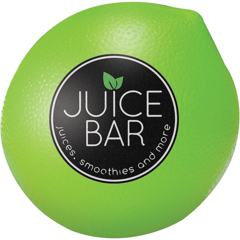 Stressboll med tryck formad som en lime. Trycket håller toppkvalitet och tål lång tids knådande.