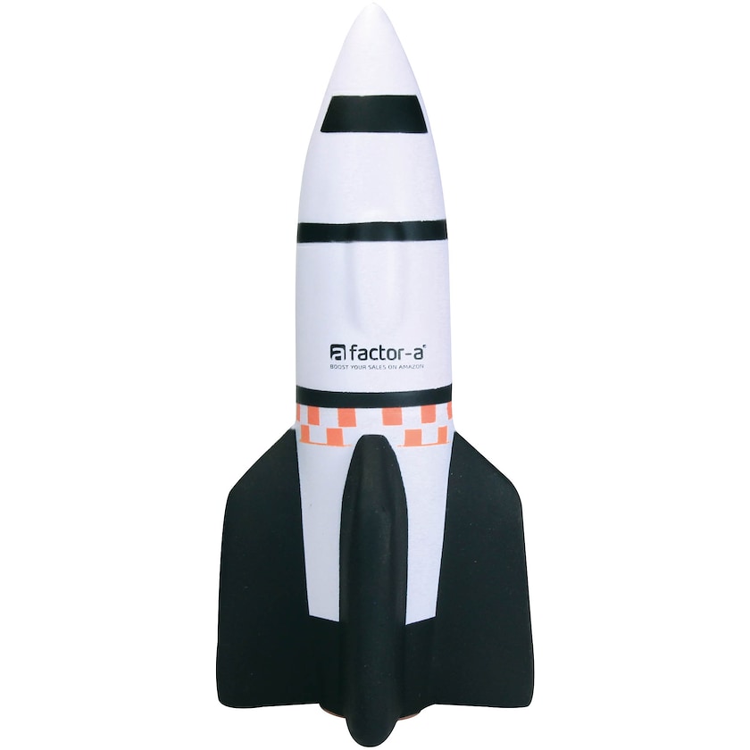 Stressboll designad som en klassisk rymdraket. En perfekt stressboll för företag som siktar mot stjärnorna. Och vem gör inte det?
