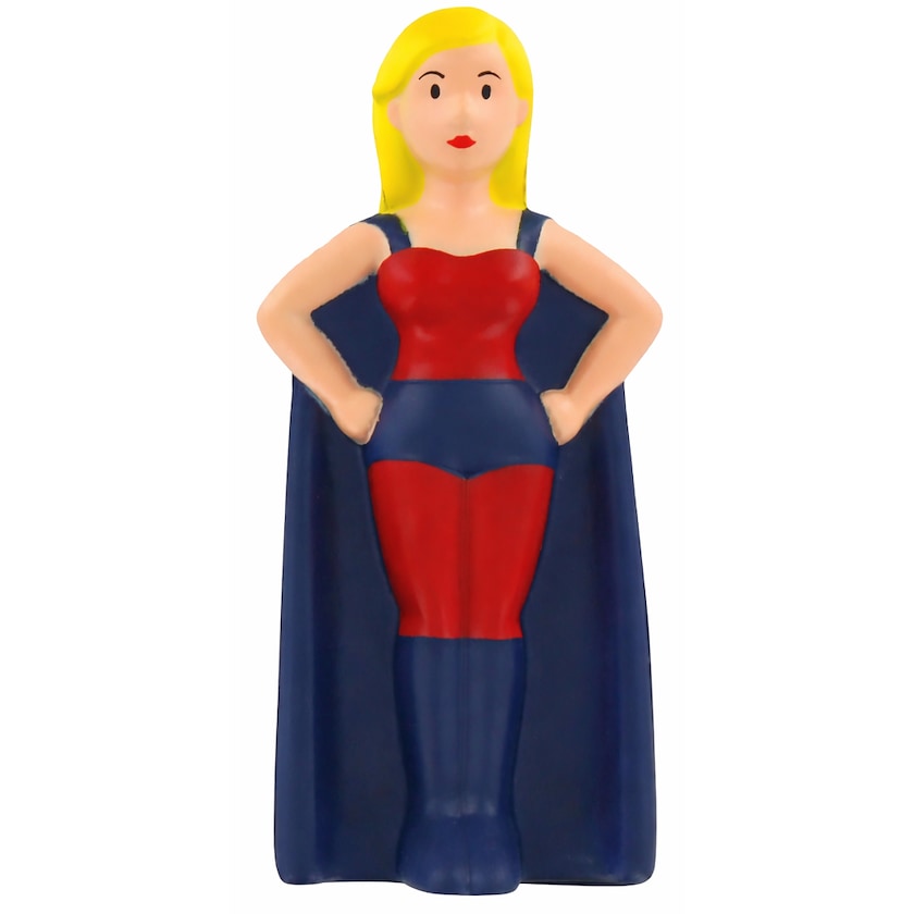 Stressboll i form av en kvinnlig superhjälte. Reducerar stress och hjälper dig att bli en hjälte i vardagen. Trycket håller toppklass.