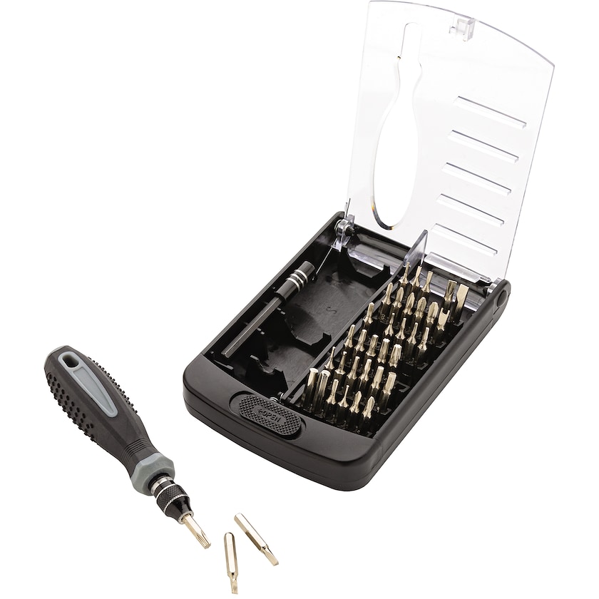 Bitssats i 38 delar. Hemmafixarens bästa vän! Levereras i en tjusig presentlåda. Bitsen är gjorda av karbonstål vilket gör dem väldigt starka. Endast 1-färgstryck är möjligt.
