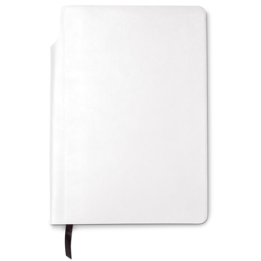 Skrivbok i A5-storlek med omslag av mjukt konstläder. Skrivboken har 96 linjerade blad och på bokryggen finns ett praktiskt förvaringsutrymme för en penna. Finns i flera attraktiva färger.