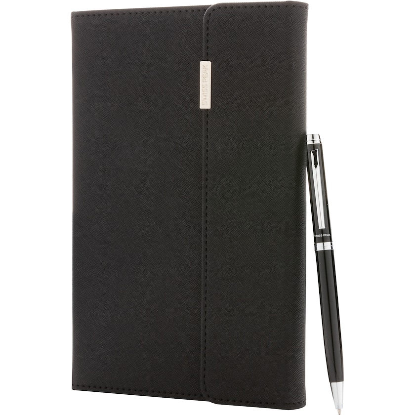 Exklusivt set med skrivbok och penna. Skrivboken har ett påkostat omslag av konstläder med en metallplatta som kan lasergraveras. Märkning kan antingen ske med tryck på omslaget eller med lasergravyr på metallplattan. Även pennan kan lasergraveras.
