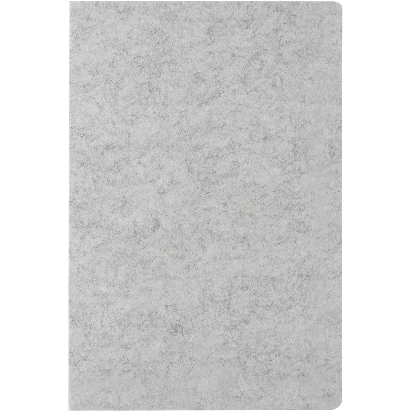 Skrivbok med omslag av återvunnen filt. Inlagan består av 96 linjerade blad. Skrivböckerna levereras i en presentkartong av naturfärgat papper.