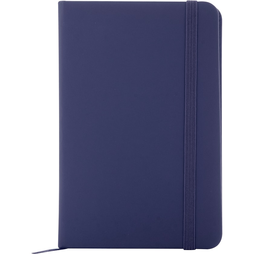 Skrivbok i A6-storlek av återvunnet material. Skrivbokens omslag är producerad av återvunnen polyuretan. Inlagan som består av 100 linjerade blad är tillverkad av återvunnet papper.