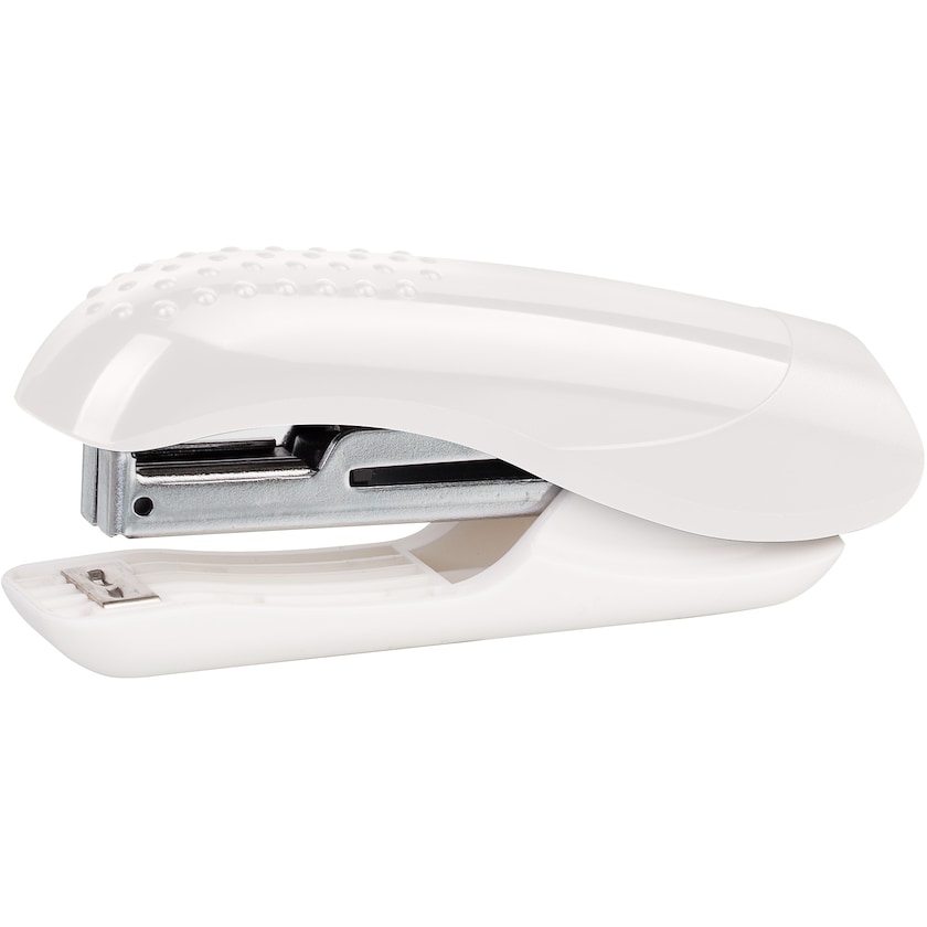 Häftapparat med tryck. Klarar att häfta ca 10 blad. Trycket sker på häftapparatens ovansida.