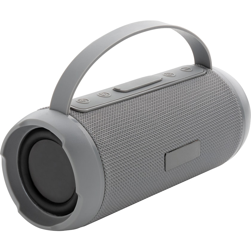 Vattentät trådlös högtalare med ett kraftfullt ljud. Perfekt för utomhusbruk. Tack vare handtaget är den lätt att ta med överallt. Batteriet klarar upp till 6 timmars speltid. Trycket sker på metallplattan.