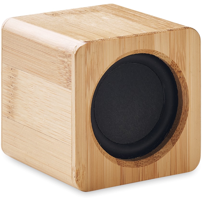 Trådlös högtalare av äkta bambu. Speltiden är ca 4 timmar vid 70% volym. Märkning sker antingen med tryck eller lasergravyr.