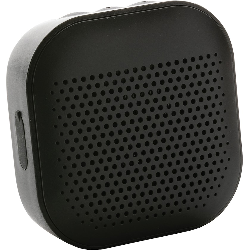 Kompakt trådlös högtalare av återvunnen ABS. Speltiden är upp till 3,5 timmar på en laddning. Högtalaren använder sig av BT5.3-koppling för förstklassigt ljud och det operativa avståndet är 10 meter. IPX5-vattentålig. Kan ta emot telefonsamtal. Levereras i en pappask av FSC-certifierat papper.