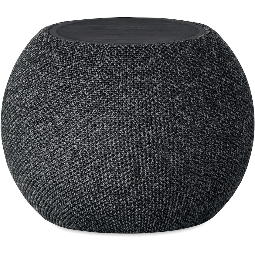 Kombinerad 5.0 trådlös högtalare och trådlös laddning. Tillverkad av ABS, RPET och svartlackad bambu. Drivs med ett uppladdningsbart Li-ION 1200 mAh-batteri. SD-kort och AUX-USB-kabel medföljer. 5 timmars speltid. Märkning sker på högtalarens ovansida.